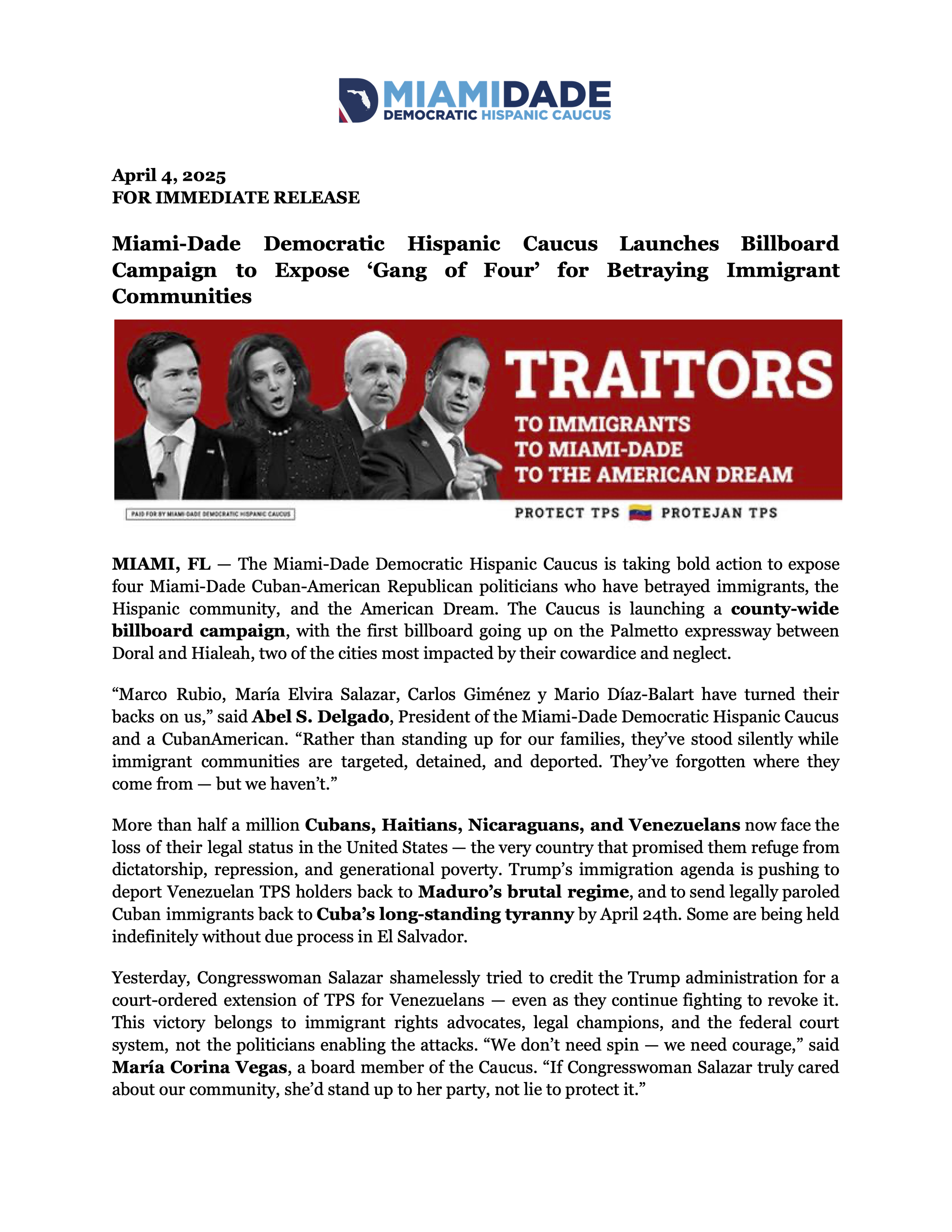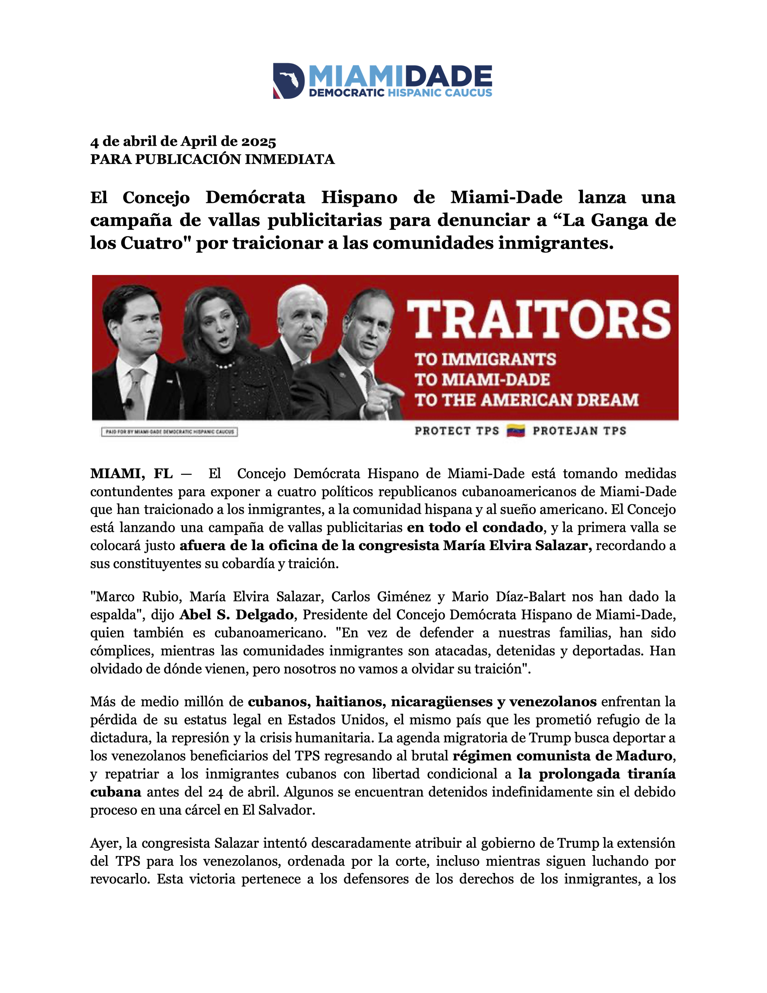 Press Releases AVISOS DE PRENSA April 24, 2025 - English 24 de Abril, 2025 - Español April 4, 2025 - English 4 de abril 2025 - Español